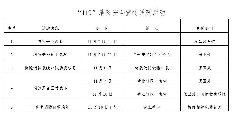 根据《Beat365中文官方网站关于开展今冬明春防火安全活动的通知》(校保〔2022〕3号)安排,学校将以2022年“119”消防安全宣传周为契机,拉开冬春季节防火安全活动的序幕。通过开展系列活动,继续加强师生消防安全教育,持续提升师生火灾自救互救能力,全面维护在校师生员工生命财产安全,全力确保学校不发生火灾事故。