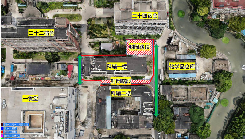 徐汇校区科辅一楼工程拟于10月12日开始施工准备工作,为确保师生安全,根据施工安全管理规范需对施工现场进行封闭管理,并临时封闭部分路段,特公告如下。