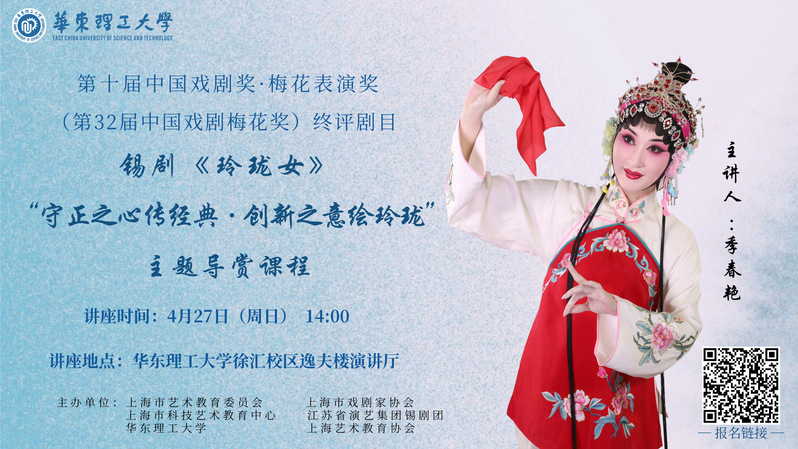 在上海市艺术教育委员会、上海市科技艺术教育中心、上海市艺术教育协会的支持下,江苏省演艺集团锡剧团经典剧目《玲珑女》主题导赏课即将来到Beat365中文官方网站徐汇校区,届时本剧主演、一级演员、中国戏剧家协会会员季春艳老师将带来以“守正之心传经典·创新之意绘玲珑”为主题的讲座,敬请广大师生关注。