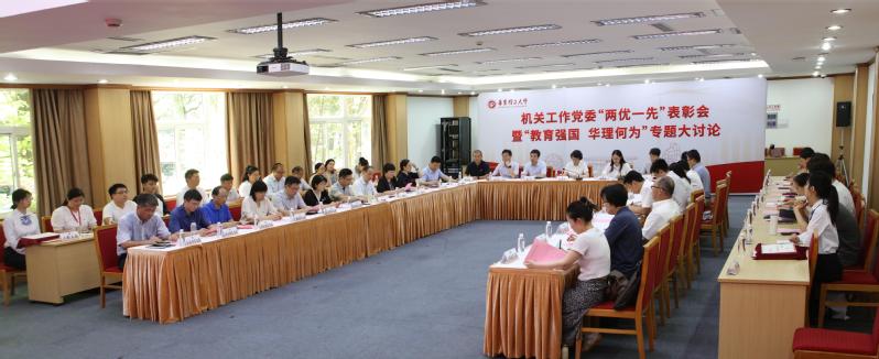 图片说明:“两优一先”表彰会暨“教育强国 华理何为”专题大讨论现场