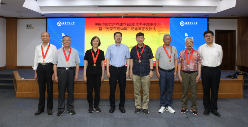 6月24日上午,学校举行庆祝中国共产党成立103周年老干部座谈会暨“光荣在党50年”纪念章颁发仪式。校党委书记蒋传海为沈伟国、蒋文文、冯幼乾、吴小敏、王才龙、王耀先等6名老党员代表发放了“光荣在党50年”纪念章。校党委副书记沈海涛主持座谈会。党委办公室主任侯宇、离退休工作处处长热核参加活动。