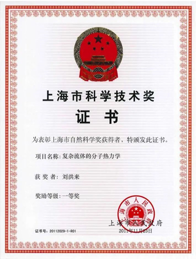 在后续研究中,刘洪来不断开辟学科新方向,并取得了丰硕成果:建立了高分子系统的分子热力学模型和液液平衡的计算机模拟新方法,获1998年教育部科技进步一等奖;提出现代分子热力学研究方法,建立了基于缔合统计理论的复杂流体分子热力学模型,获2011年上海市自然科学一等奖;基于聚合物刷的Pickering界面催化体系构建与热力学机制,获2022年中国化工学会基础研究成果二等奖。