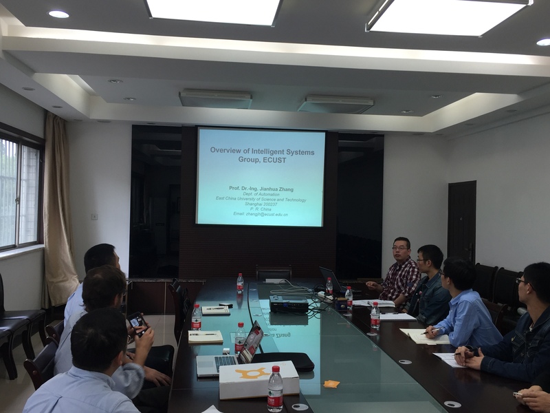 Dr. Alejandro Riera, Manager of Asia-Pacific Division of NE (Neuroelectrics) Company in Spain, Mr. Jiang Hui, Chief Executive Officer and Mr. Zhao Jun, Chief Executive Officer of Shanghai Infortraffic Technology Co., Ltd., paid a visit to ECUST on Oct. 15th, 2016. They held technical exchanges with the Intelligent System research group led by Professor Zhang Jianhua of the School of Information, ECUST.