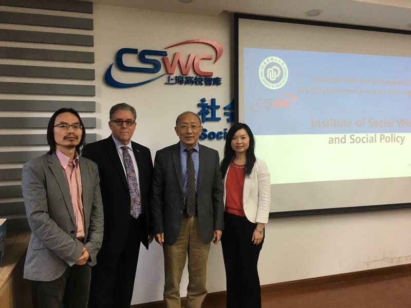 Prof. Paul Maiden, Associate Dean of the School of Social Work of the University of Southern California, and Associate Professor Xiao Xinyi visited the Institute of Social Work and Social Policy, one of the University Think Tanks of Shanghai on November 11th, 2016. Professor Xu Yongxiang, Director of the Institute and Professor He Xuesong, Dean of School of Social Science welcomed the American guests.