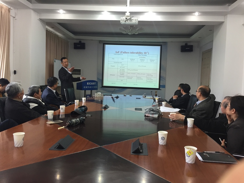 Dr. Lei Yuebao of EDF British energy company paid an academic visit to the School of Mechanical and Power Engineering, ECUST from April 7th to 8th, 2017. During the visit, Dr. Lei Yuebao made an academic report entitled “Structural Integrity Assessment within British Nuclear Power Plants”, elaborating on the evaluation method of the structural integrity of nuclear power plant, and introducing the integrity evaluation criteria R5 and R6. Professor Li Peining, Tu Shandong, Xuan Fuzhen and other professors and students from the School of Mechanical and Power Engineering attended the report, and they had discussion on topics of common interests after the report.