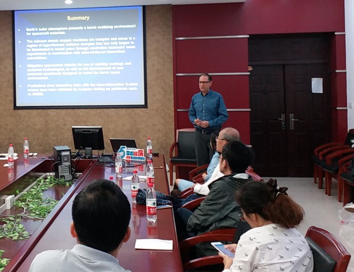 At the invitation of the School of Science, Professor Timothy K. Minton from Montana State University visited ECUST and delivered an academic report entitled Hyperthermal Atomic-Oxygen Reactions on Materials in Low Earth Orbit on October 11, 2017. Professor Gong Shangqing, Vice Dean of the School of Sciences presided over the report meeting.
