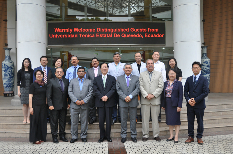 A delegation of ten from Kevindo National Technical University of Ecuador paid a visit to ECUST on June 13th, 2019. The delegation include Mr. Eduardo Diaz Ocampo, President of the National Technical University of Ecuador, Mr. Edgar Pastrano, Director of the External Relations Department, Mr. Carlos Martinez Medina, Director of the Department of Educational Assessment and Quality Assurance, and Byron Oviedo, Director of the Research Department. ECUST President Qu Jingping met with the guests.