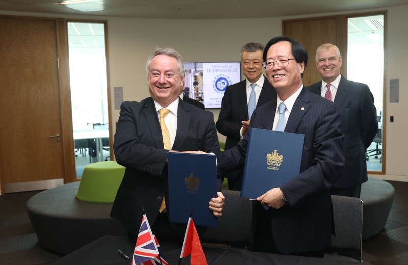 The Agreement Signing Ceremony for co-constructing the Confucius Institute of Science and Technology Innovation at the University of Huddersfield was held in the Austler Building of Huddersfield University on July 8th, 2019. More than 50 people attended the signing ceremony, including Prince Andrew, Duke of York, Mr. Liu Xiaoming, Chinese Ambassador to the UK, Mr. Wang Yongli, Minister Counsellor for Education of Chinese Embassy, Mr. Zheng Xiyuan, Consul General of the Chinese Consulate in Manchester, and Mr. David Taylor, Vice President of Hudson University.