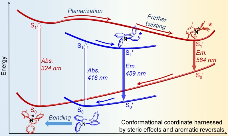 Recently, the research team of Academician Tian He from the School of Chemistry and Molecular Engineering and the Feringa Nobel Prize Scientists Joint Research Center of ECUST has made important progress in the research of vibration-induced luminescence (VIE) mechanism again. The related research article was published in Journal of American Chemical Society with the title of “Interaction of Stereoeffects and Aromaticity Reverses to Expand the Structural/Electronic Responses of Dihydrophenazine”.