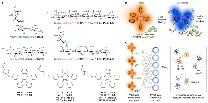 Recently, the research team of Professor He Xiaopeng from the School of Chemistry and Molecular Engineering and the Feringa Nobel Prize Scientists Joint Research Center, ECUST developed an accurate detective device for influenza virus based on the “vibration-induced luminescence” mechanism, and the related research article was published online in Chem, a sub-journal of Cell.