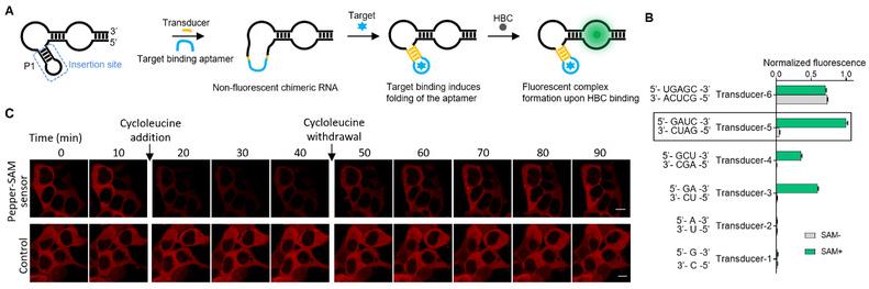 Recently, the research team of Professor Yang Yi from the School of Pharmacy, the State Key Laboratory of Bioreactor Engineering, optogenetics and the Interdisciplinary Research Center of Synthetic Biology, ECUST, has made important progress in the research of genetically encoded fluorescent RNA probes and published a research article entitled “Imaging intracellular metabolite and protein changes in live mammalian cells with bright fluorescent RNA-based genetically encodedsensors” in the international academic journal Biosensors and Bioelectronics.