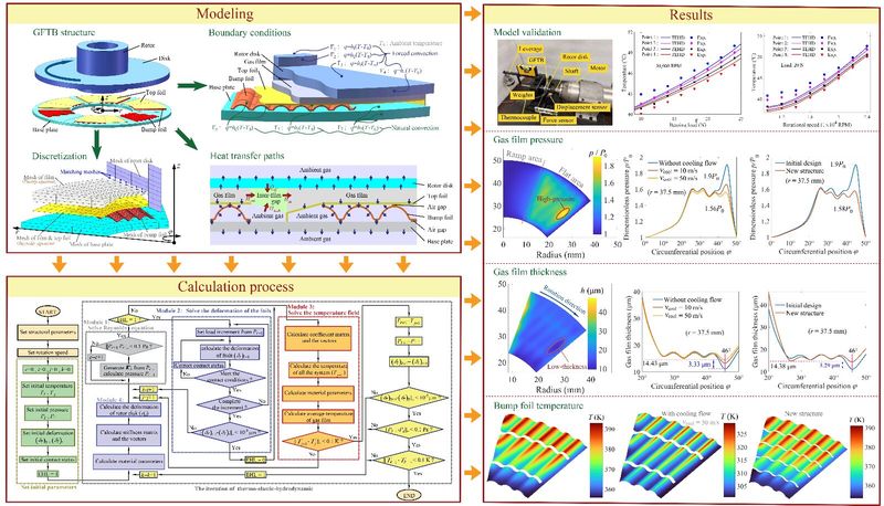 To solve this problem, the research team established a coupled thermo-elasto-hydrodynamic (TEHD) model. The model incorporates contact thermal resistance and a smooth-function-based stick and slip friction model, enabling the coupled analysis of mechanical deformation and heat conduction in the bump foil.