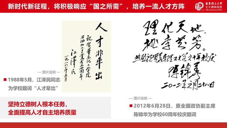 回望70年的办学历程,勤奋求实的华理人,始终坚守为党育人、为国育才的初心使命。从建校初期首创化学与制药工学、抗生素制造工学、重有机合成、化学工程、感光材料、玻璃钢等专业,为国家快速发展提供人才支撑;到上世纪50年代末,应国家原子能事业发展需求创建第二无机工业系;再到当下成立碳中和未来技术学院等培养国家急需紧缺人才;从全面工程教育,到绿色工程教育,再到新工科;从“培养高级工业专门人才”,到“少而精,学到手”,到“合格+特色”,到“厚基础,强实践”,再到“创新型人才”,华理形成了特色鲜明的卓越工程师培养体系,为国家培养了一大批社会精英、行业翘楚和国家栋梁,成就了“化学工程师摇篮”的美誉。